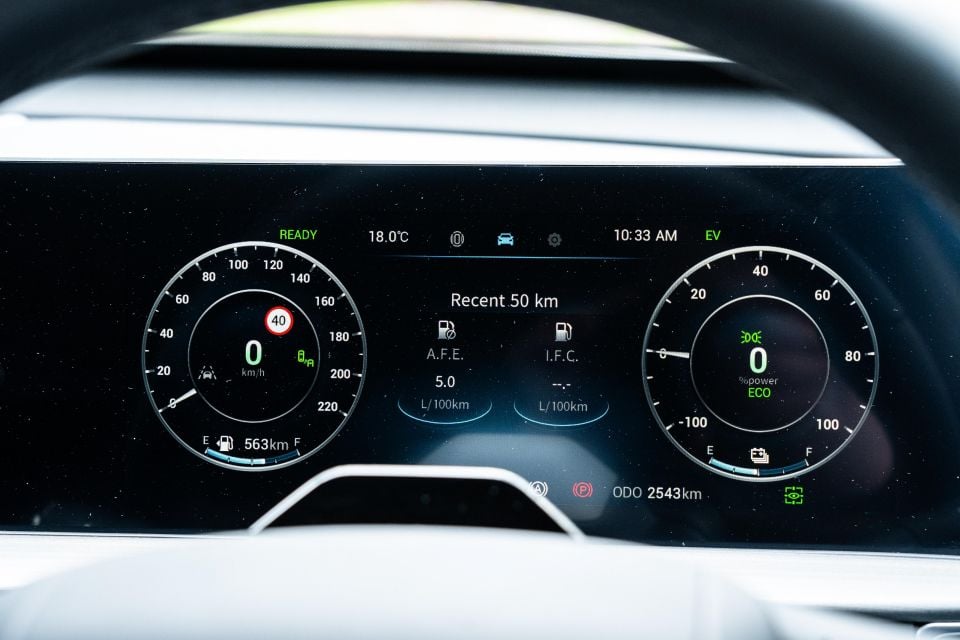 The dashboard’s digital display seems to have raided the parts bins of yesteryear’s Mercedes. Its tiled touchscreen interface feels like a techie lovechild, born from an unholy union of an Apple/Android smartphone and BMW’s iDrive app abyss.