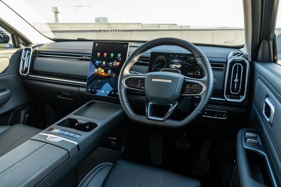 At first glance, as with most products in the Chery-Omoda-Jaecoo stable, the flashy and screen-heavy design of the J7’s interior adds a lot of wow factor.