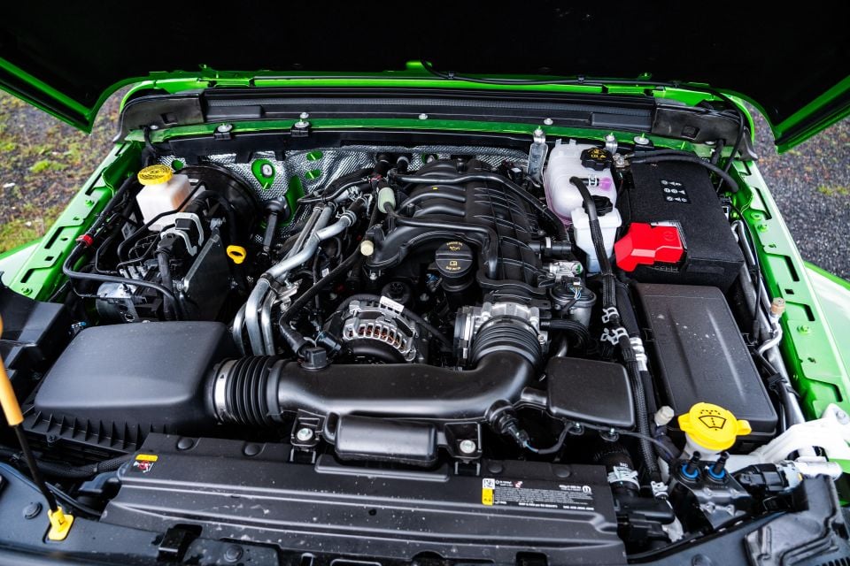 The heart of the beast, a 3.6-liter Pentastar V6, thrums with raw, naturally aspirated power. Mated to a responsive eight-speed automatic transmission and a low-range gearbox, this combination eagerly claws its way through challenging terrain.