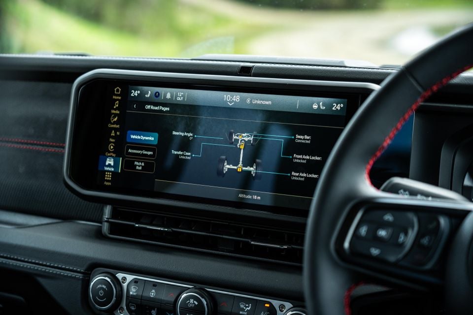 The Gladiator’s cockpit offers a refreshing anachronism in our increasingly digital world. While many $80,000+ vehicles boast fully digital dashboards, the Gladiator, like its Wrangler sibling, stubbornly sticks to analogue gauges. Call me old-fashioned, but there’s a certain charm to watching those needles sweep. And thankfully, Jeep has finally banished the distracting miles-per-hour markings from the speedometer in this latest iteration – a welcome change for us metric-loving Australians.
