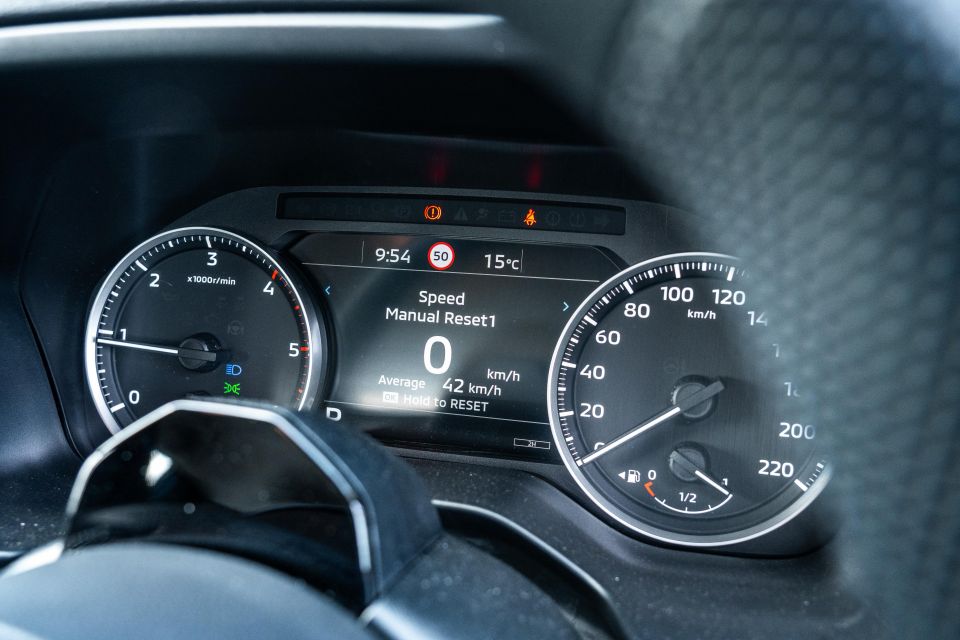 Behind the wheel, the Triton keeps it classic. Twin analogue gauges dominate the instrument panel, flanking a concise digital display. This isn’t just a screen; it’s your mission control for trip data and vehicle settings. Effortlessly command it all with intuitive steering wheel controls – information at your fingertips.
